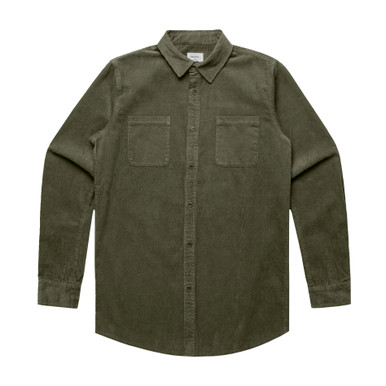 Long-sleeve button-up shirt, double chest pockets, tonal corozo nut buttons, back yoke, adjustable cuffs, side seamed, preshrunk to minimise shrinkage. Printing Techniques: Suited for embroidery Click here for more info. Fabric Weight: 300 GSM. Composition: Heavy weight, 300 GSM, 100% cotton corduroy, 10 wales. Product Weight: Heavy Weight. Fit: Regular. Gender: Men. Colours: ARMY, ARMY - BACK, BLACK, BLACK - BACK, WALNUT, WALNUT - BACK