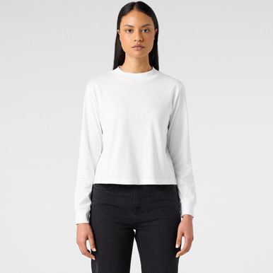 Shorter length body, long sleeves, rib cuffs, high rib neck, double needle hems, preshrunk to minimise shrinkage. Printing Techniques: Suited for screen printing, DTG and embroidery Click here for more info. Fabric Weight: 180 GSM. Composition: Mid weight, 180 GSM, 100% combed cotton. Product Weight: Mid Weight. Fit: Relaxed. Gender: Women. Colours: , BLACK, BLACK - BACK, ORCHID, ORCHID - BACK, WHITE, WHITE - BACK