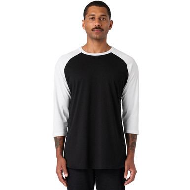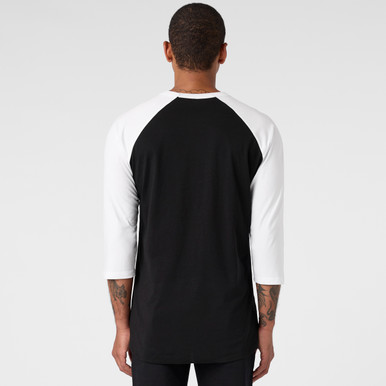 Crew neck, length raglan sleeves, curved tails, self-fabric binding on neck, side seamed, double needle hems, preshrunk to minimise shrinkage. Printing Techniques: Suited for screen printing, DTG and embroidery Click here for more info. Fabric Weight: 150 GSM. Composition: Light weight, 150 GSM, 34-singles, 100% combed cotton (marles 15% viscose). Product Weight: Light Weight. Fit: Regular. Gender: Men. Colours: , BLACK/WHITE, BLACK/WHITE - BACK, GREY MARLE/ASPHALT MARLE, GREY MARLE/ASPHALT MARLE - BACK, GREY MARLE/BURGUNDY, GREY MARLE/BURGUNDY - BACK, GREY/ASPHALT MARLE, GREY/ASPHALT MARLE - BACK, WHITE/BLACK, WHITE/BLACK - BACK, WHITE/NAVY, WHITE/NAVY - BACK